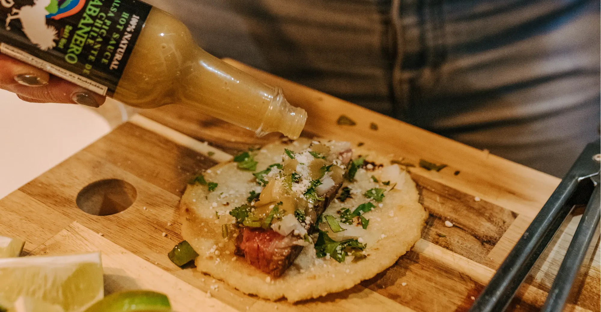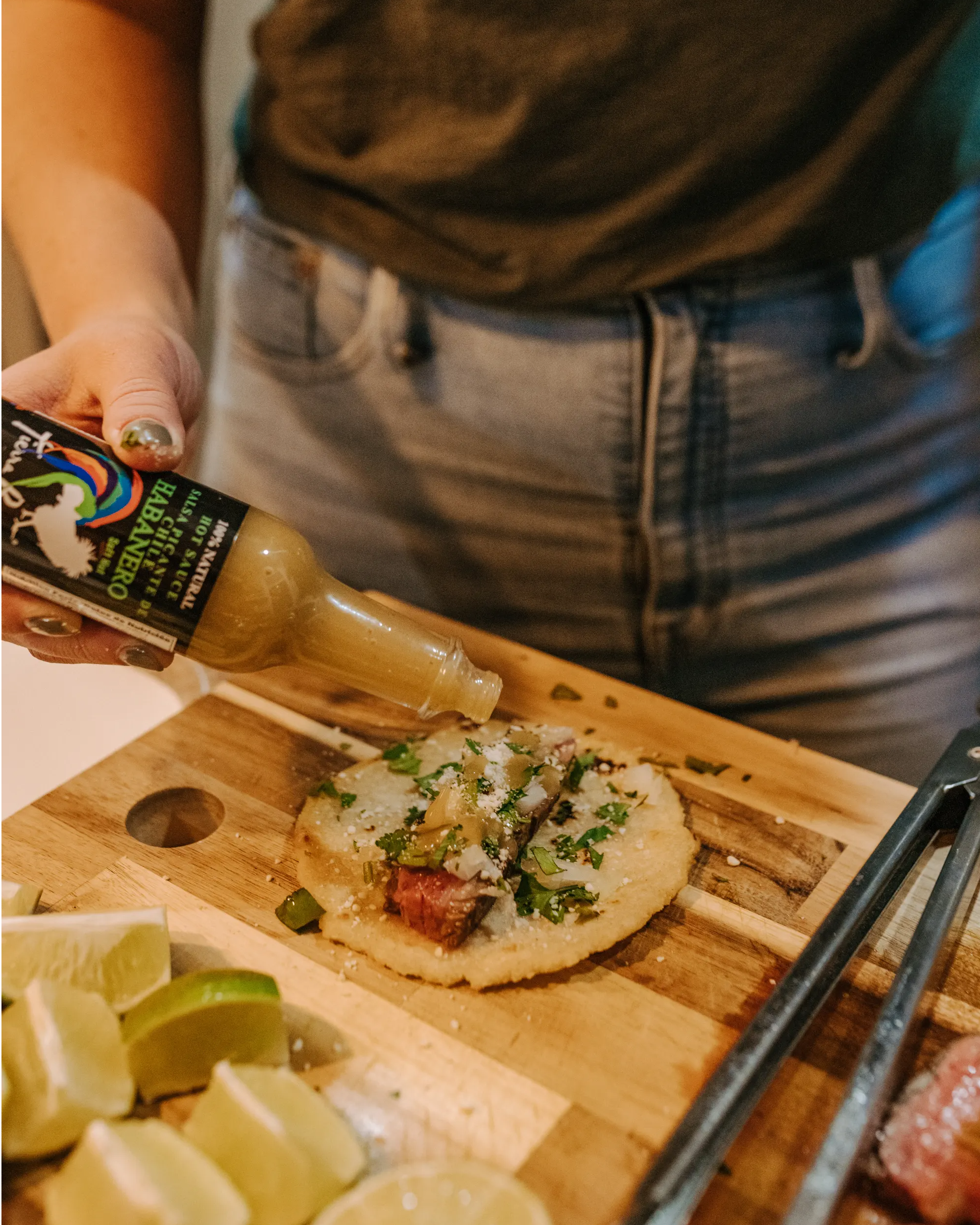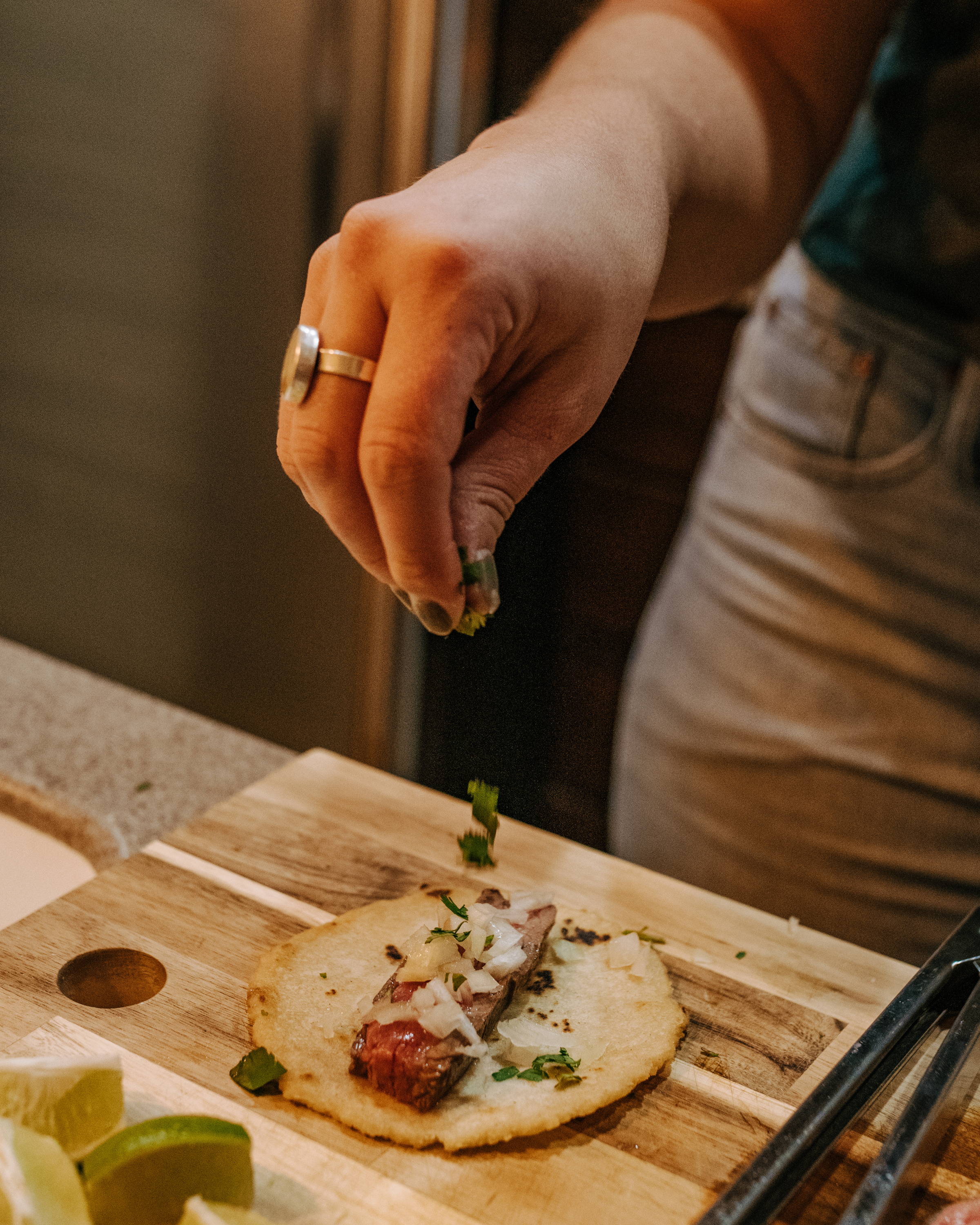 Squeeze one whole lime evenly on the tortillas and sprinkle with a light sprinkle of salt.