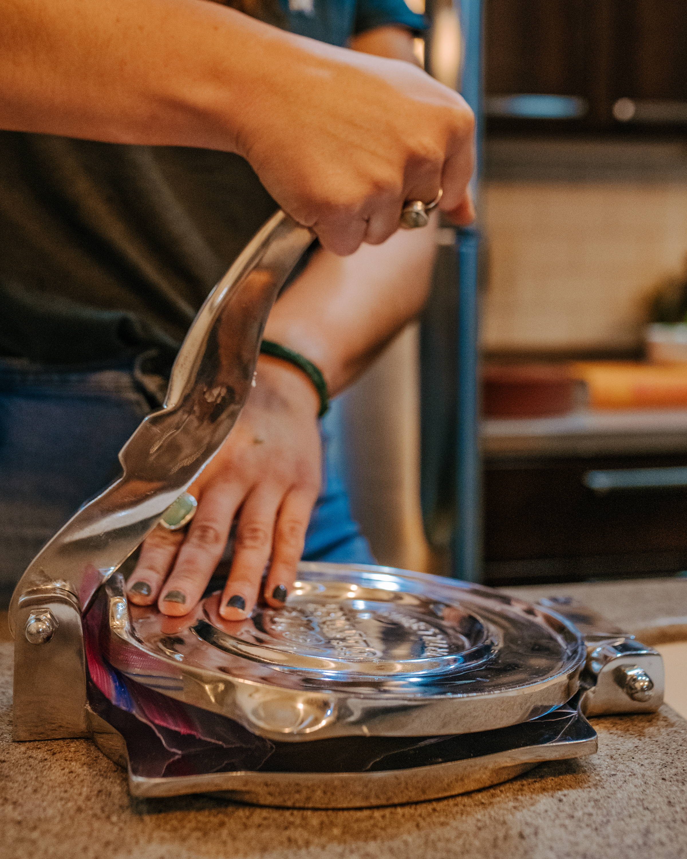 Press the dough using the tortilla press