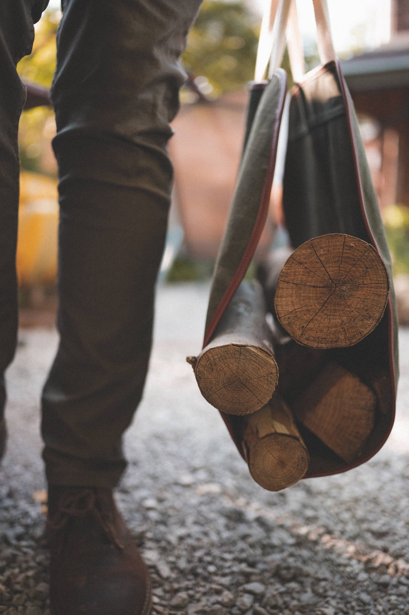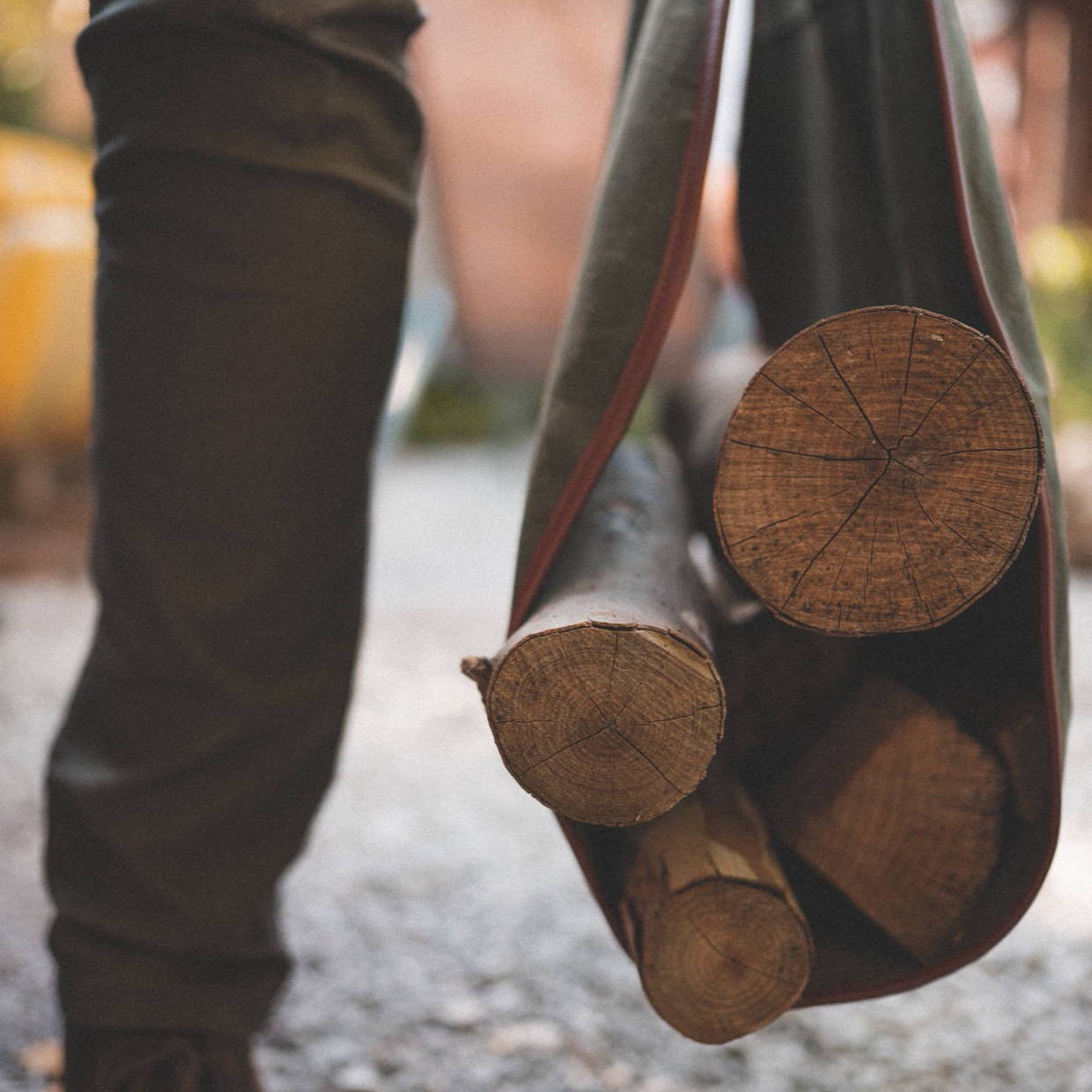 Where there’s smoke there’s fire. Where there’s fire, you should 100% have the wax canvas log carrier from P&T to make your weekend in the woods work.